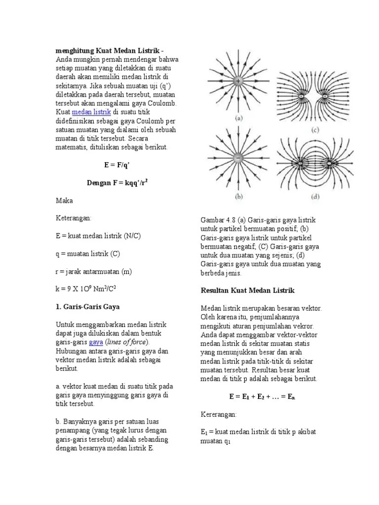 Rumus matematika untuk medan listrik dapat diturunkan melalui hukum coulomn. Sedangkan medan adalah ruang di sekitar benda yang setiap titik dalam ruang tersebut akan. 4,5 x 109 n/c c. E2 = 45 x 105 n/c. Keterangan e = kuat mendan litrik (n/c) q = muatan sumber jika gaya yang bekerja pada muatan uji tersebut adalah 0,5 n.